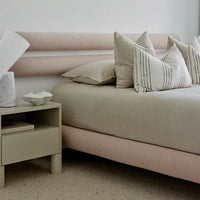 Embracing a palette of elegant pink hues, our Rosa Floating Bed introduces a fresh perspective to the conventional bed head. The gentle curved wall panels have been designed with flexibility in mind, allowing you to curate a bed that speaks to your design direction and spatial considerations.