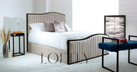 Introducing our Leon Metal Bed III, a simplistic yet elegant design. This metal bed frame will add a minimal modern touch to any bedroom. With a sleek black finish, the Leon Metal III is the perfect bed for a variety of bedroom décor and can be dressed to suit your individual interior. Contemporary bedroom settings are taken to the next level with this striking headboard, characterized by a curved hand carved frame around a rectangular board upholstered with vertical seamlines.